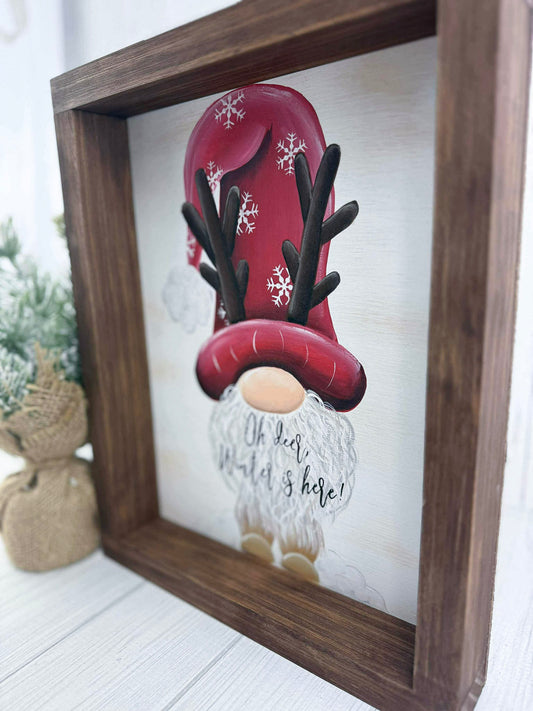 Oh Deer, Winter Is Here Framed Gnome Sign