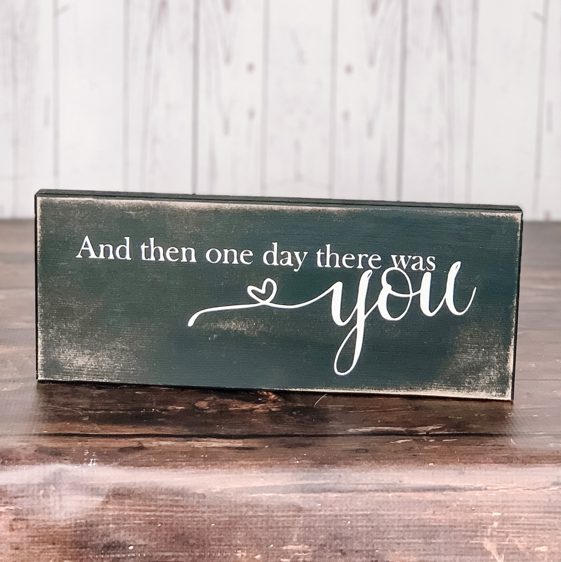 Our 'And then one day there was you' sign is a cute addition to your Valentine's Day decor. It can also make a great bridal shower or wedding gift as well.