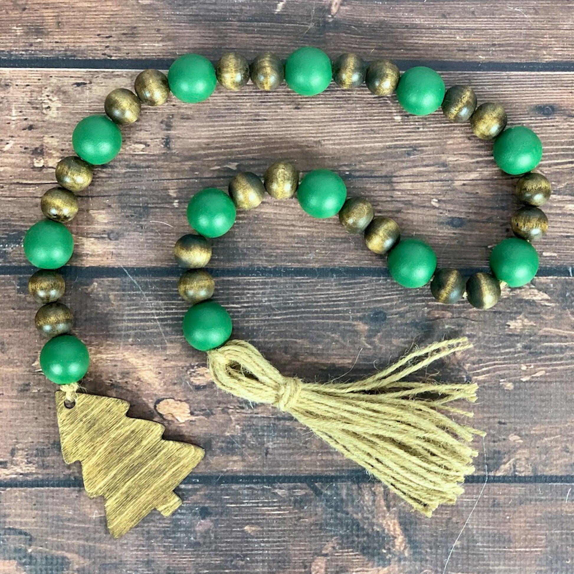 Christmas Tree Wood Bead Garland