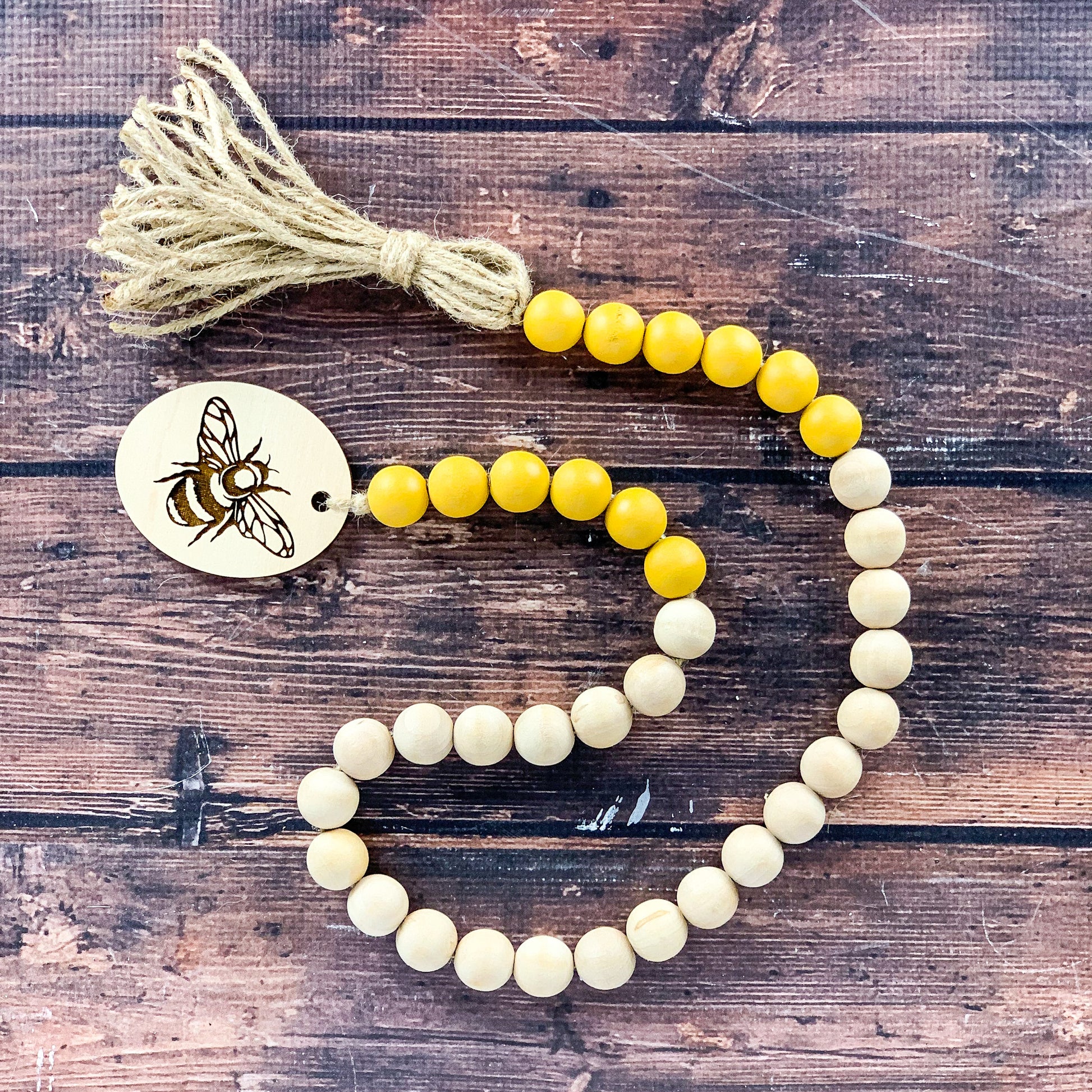 Honey Bee Farmhouse wood bead garland - Honey Bee Tiered Tray Decor