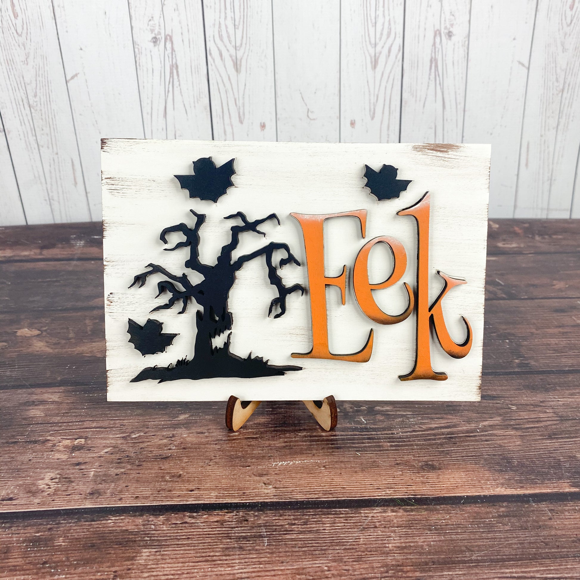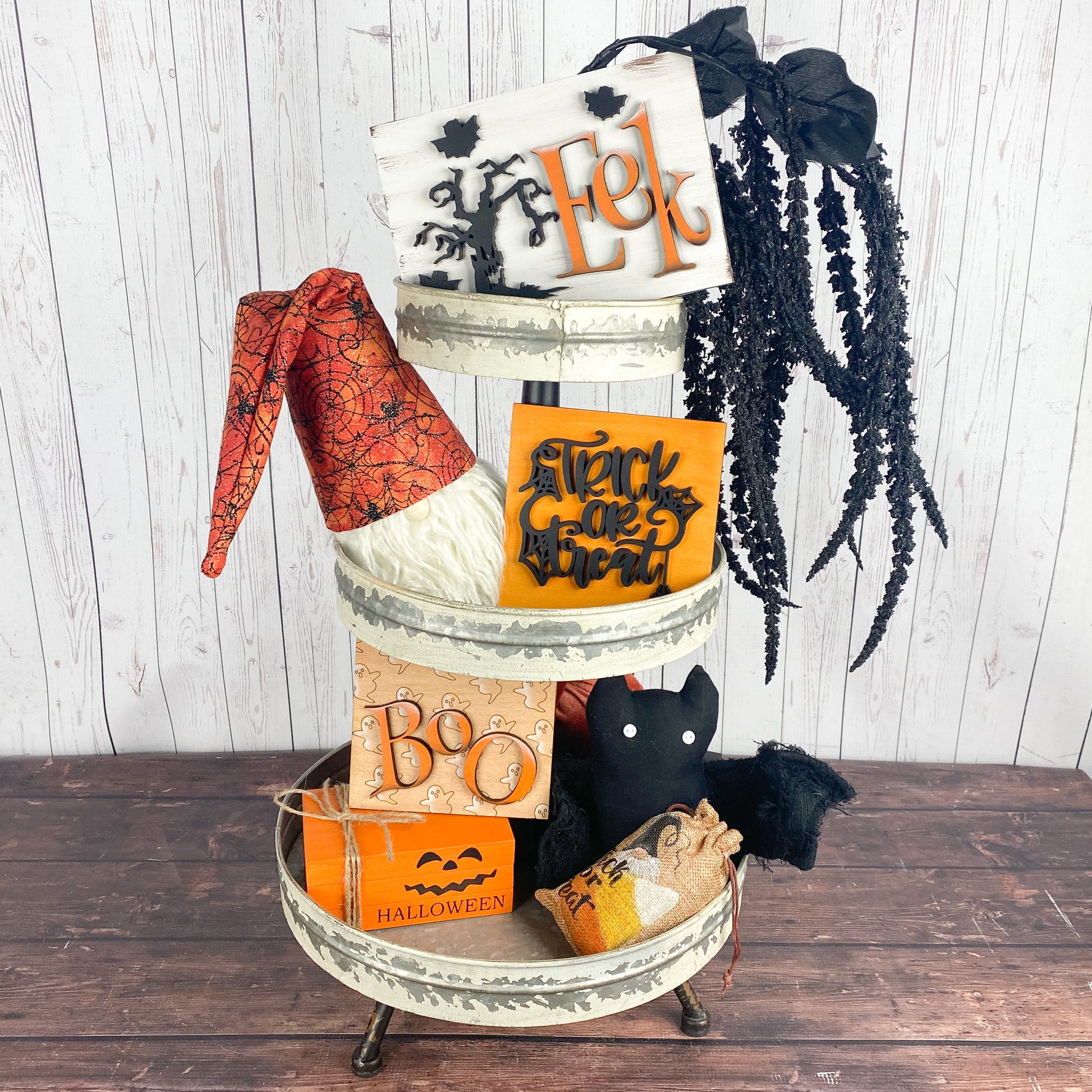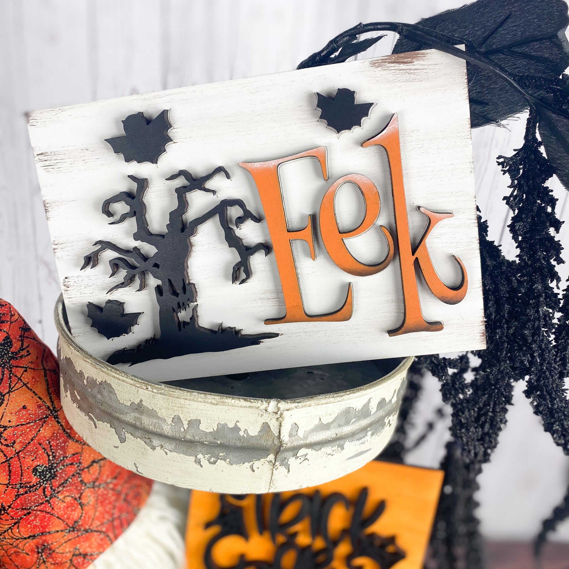 This sign is so fun and spooky and makes any tiered tray or mantle look so festive.