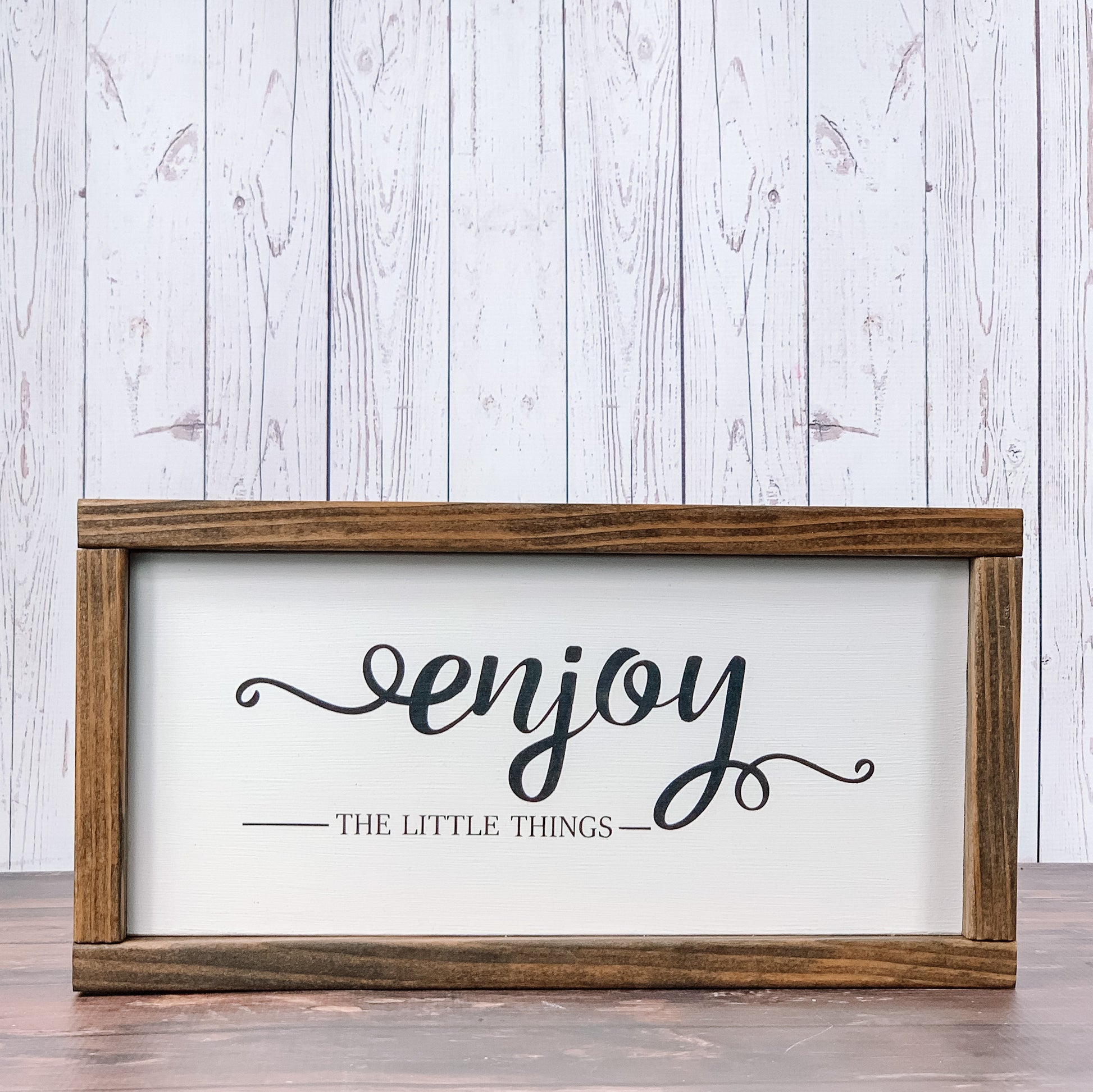 Enjoy the little things framed sign measures approx.: 13.5″ x 6.75