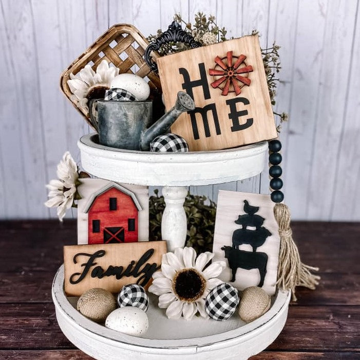 This farmhouse tiered tray is the cutest little farm theme ever! It gives that extra touch to your farmhouse kitchen decor in your farmhouse style home.
