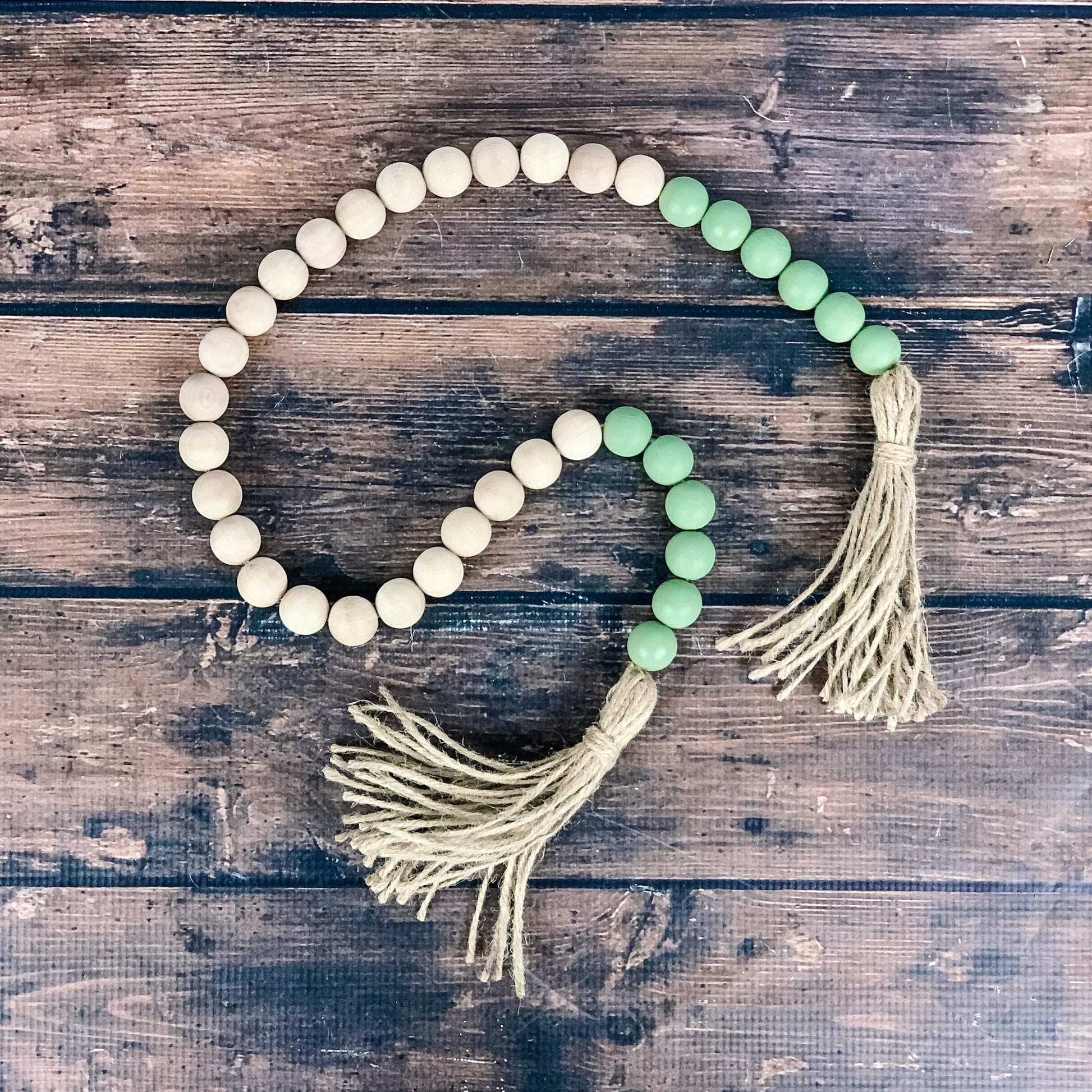 Natural and Sage Green Farmhouse Wood Bead Garland