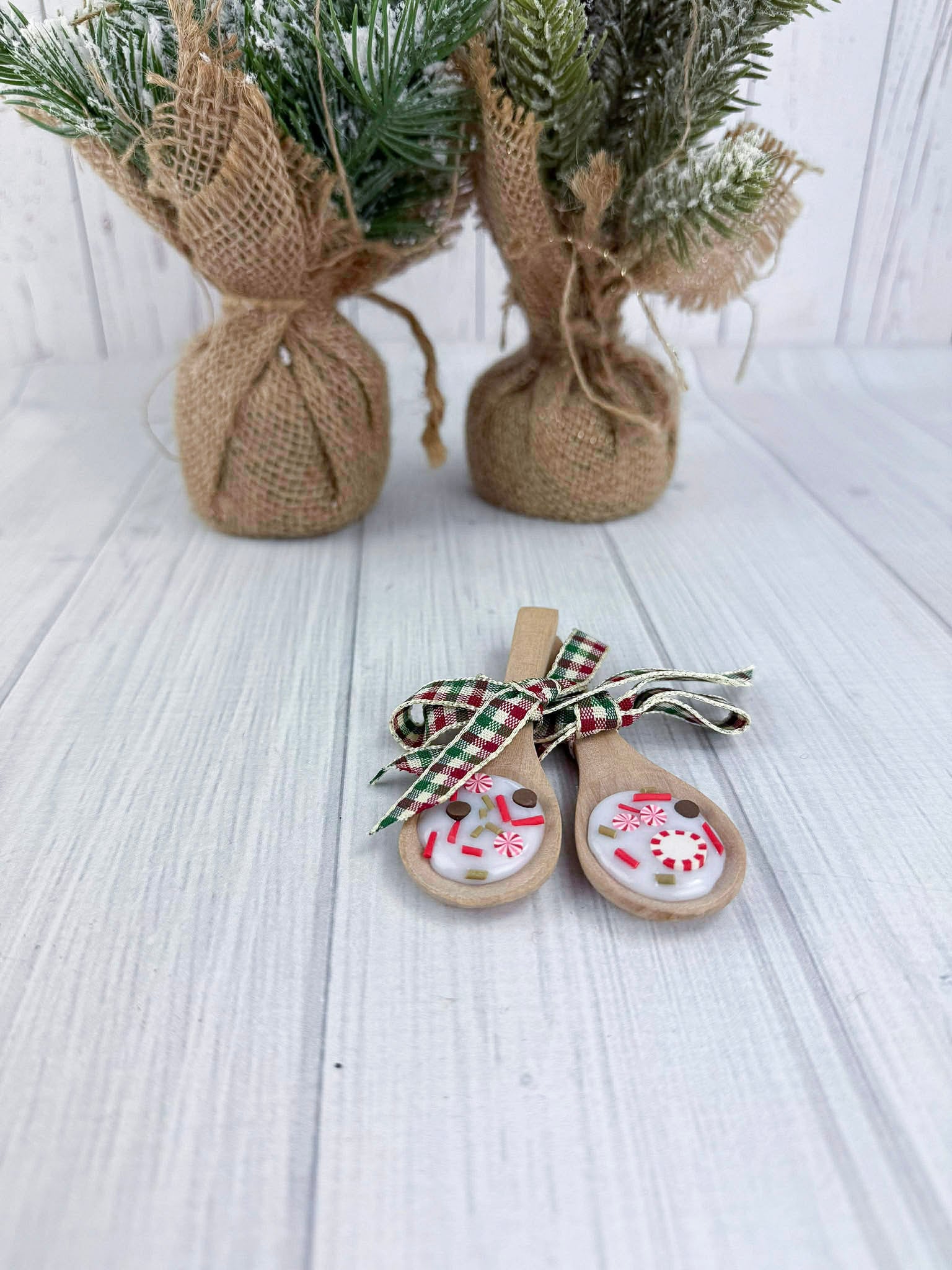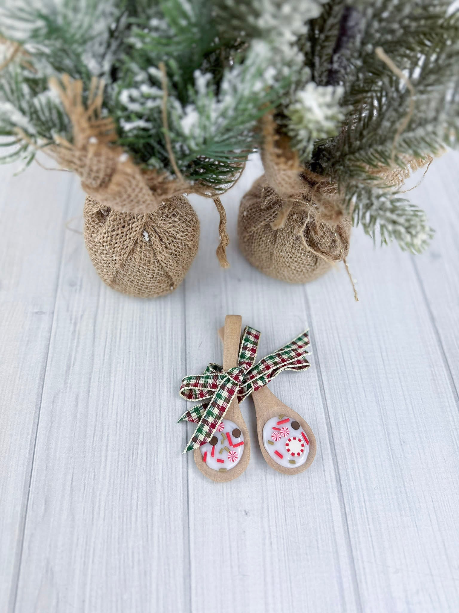 The best Christmas décor pieces to add to your cocoa bar or tiered tray. Mini Faux Chocolate Christmas Spoons!