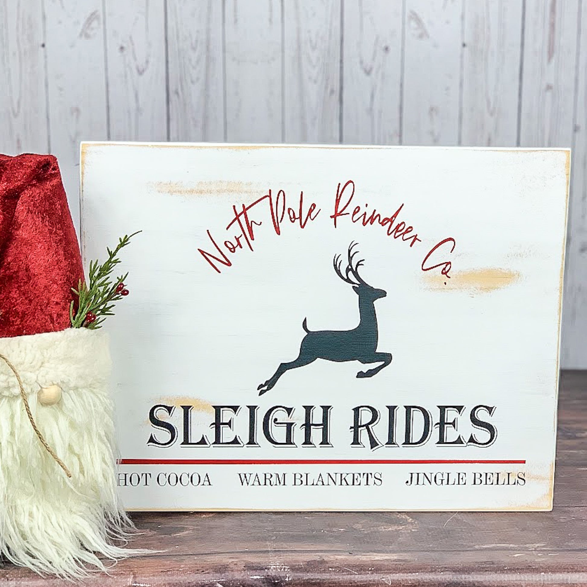 North Pole Reindeer Co sign dimensions: 16″ x 11.25″