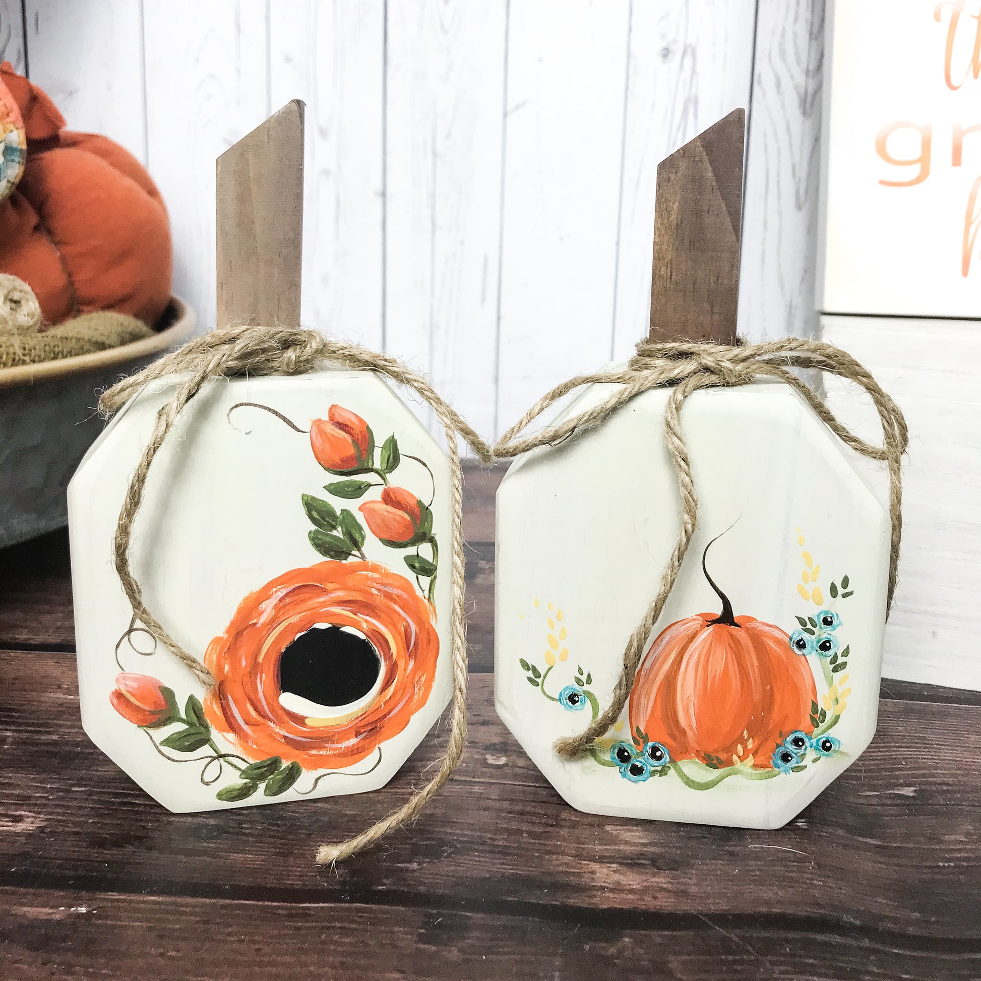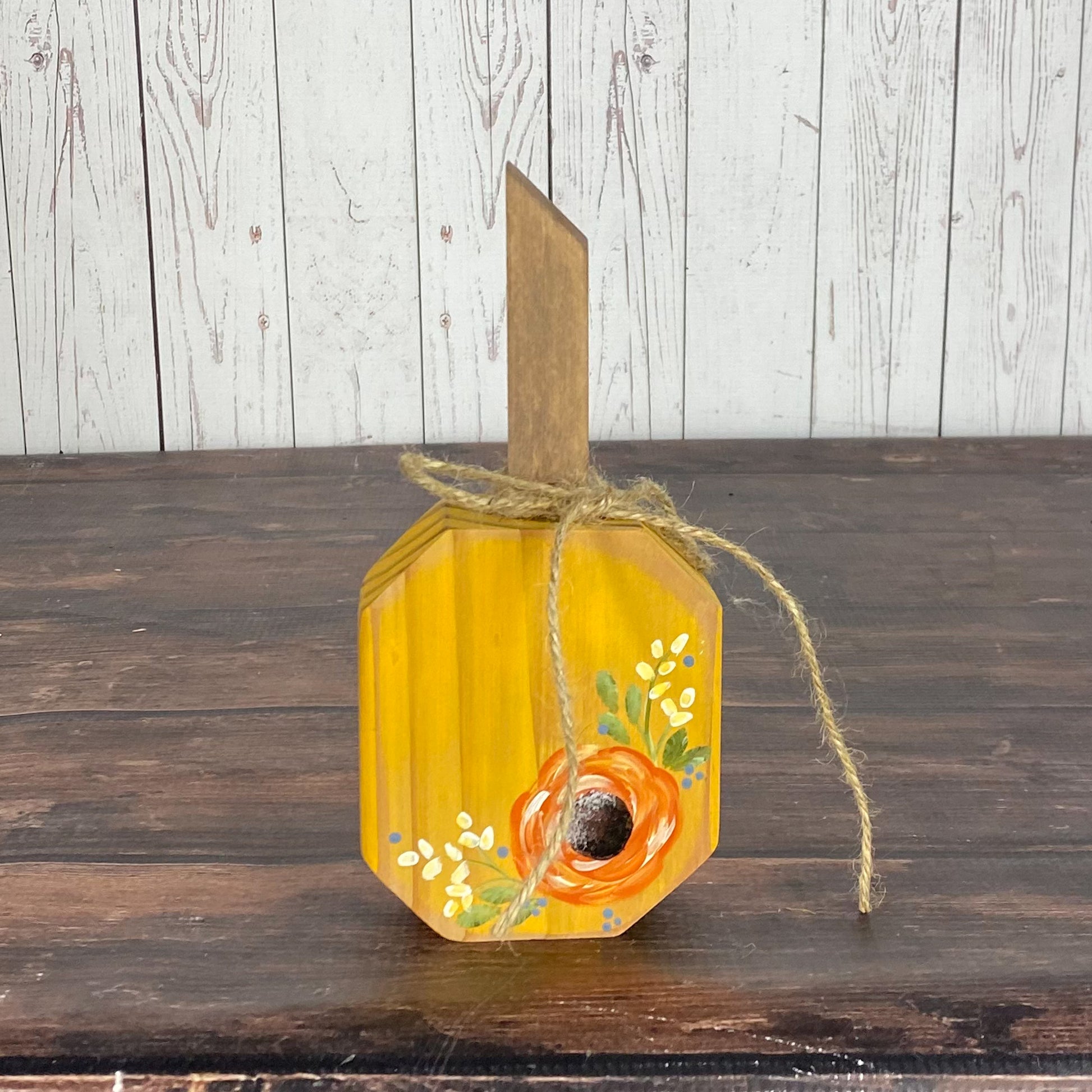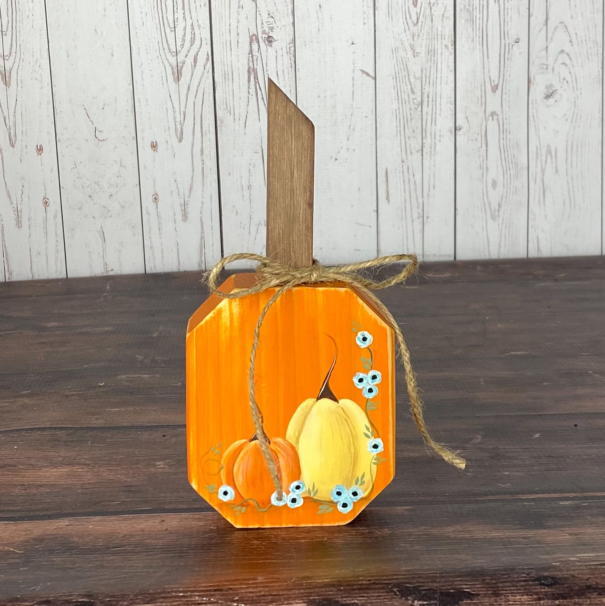 These small pumpkin signs are the perfect addition to your home decor! This autumn pumpkin has a little hand painted picture on it which gives it that extra fall feel. Each small pumpkin is hand painted which means no two are exactly the same. This means you get a piece that is completely unique and one of a kind. Each pumpkin has a distressed look to them. These pair great with our You are the pumpkin to my spice signs. It works with many different styles from clean and modern to rustic farmhouse.
