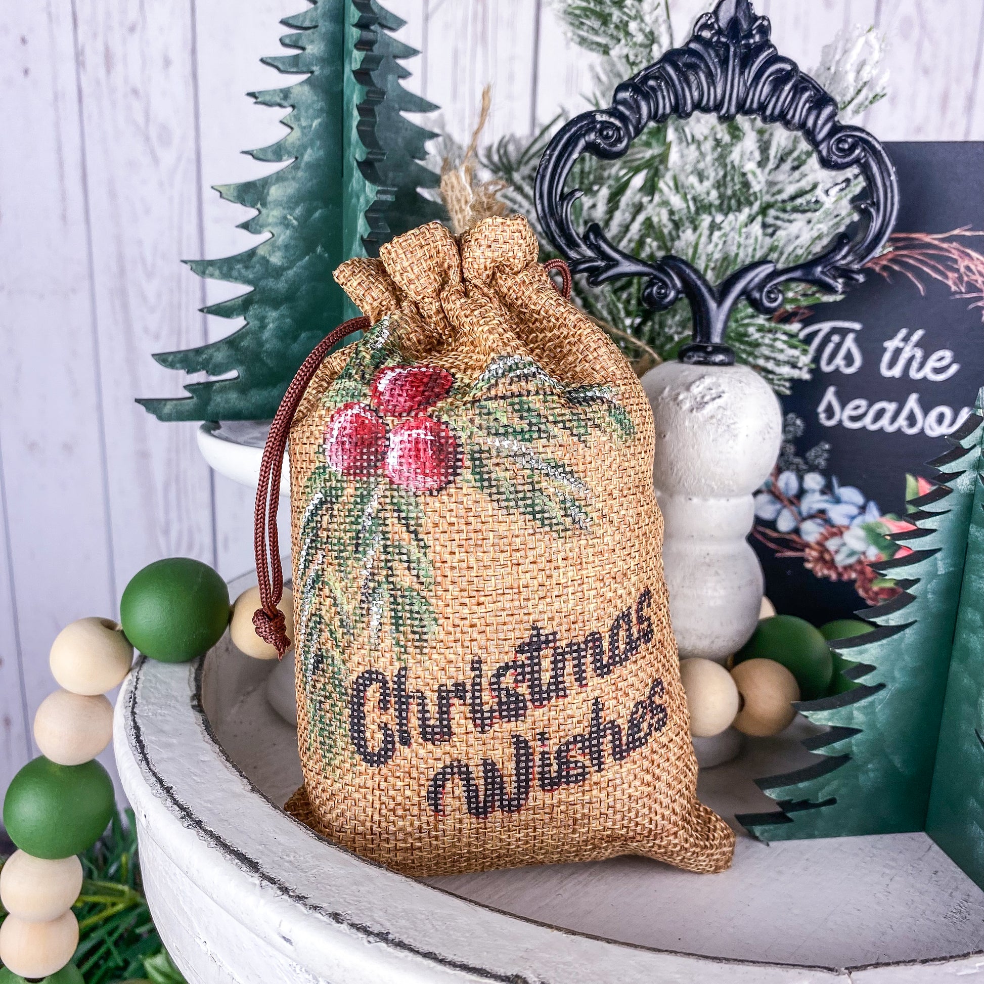 Christmas Wishes Burlap Bag measures 4"x 6"