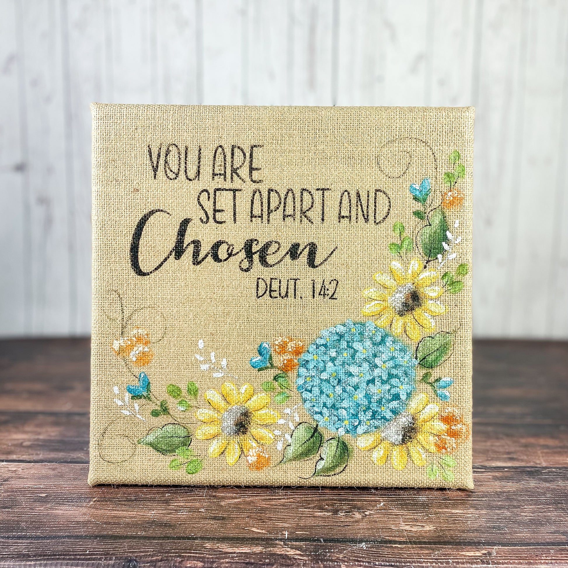 You are set apart and chosen burlap sign. (measures 10" x10")