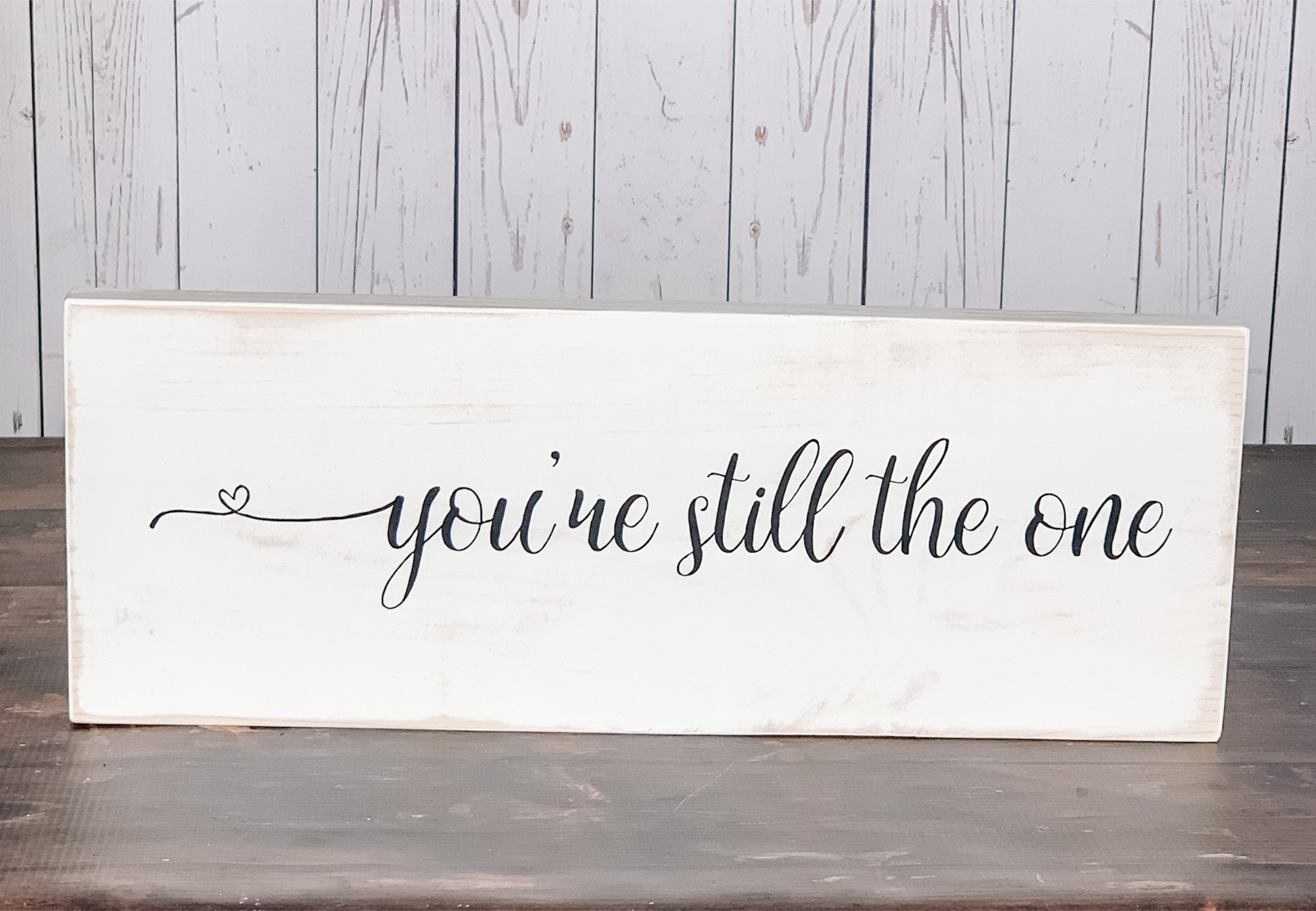 Our 'You're still the one' sign is such a sweet gift idea for a wedding or bridal shower. It also is goes well with farmhouse/country style home decor, and would look darling on your entry way table or in your tiered tray.